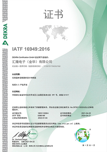 浙江汇隆晶片技术有限公司,成立于2002年12月,在电子元件行业已深耕了二十多年,是一家专业从事石英晶体谐振器、石英晶体振荡器和石英晶体频率片研发、制造、销售为一体的高新技术企业。